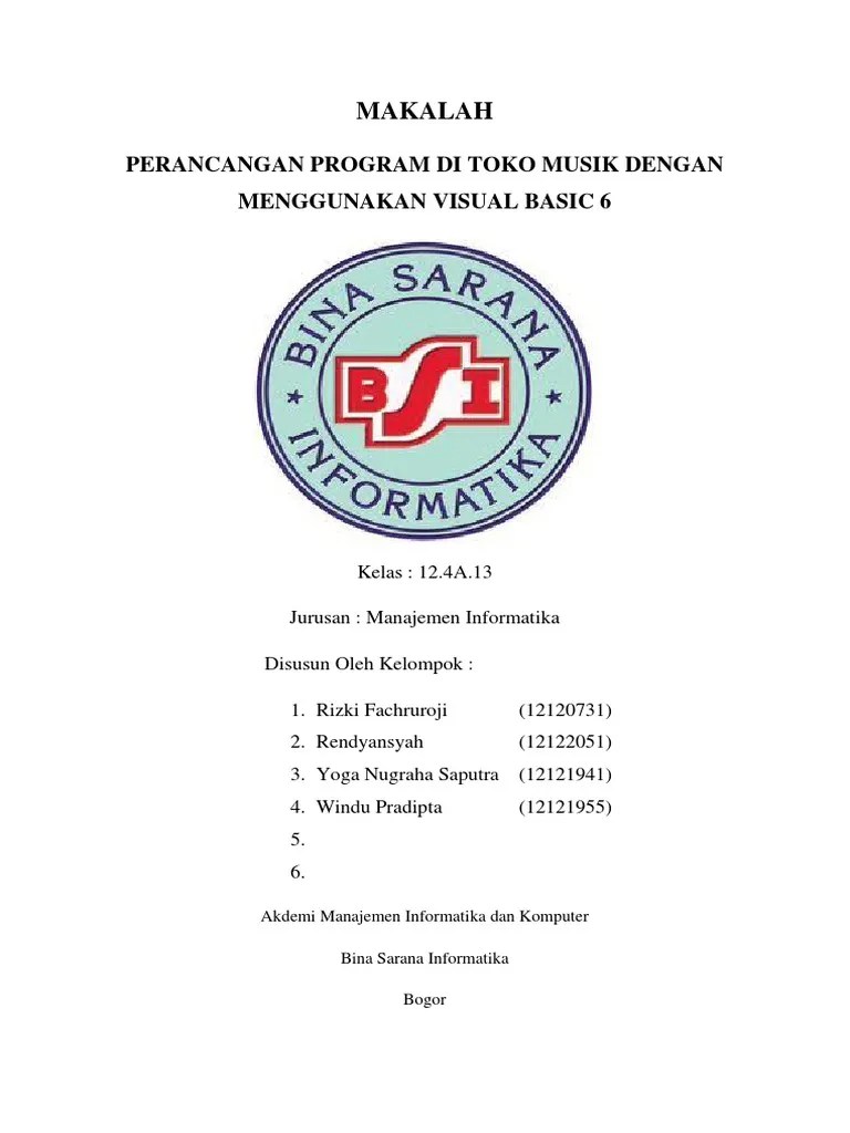 Borland c++ menyediakan enam buah operator bitwise. Contoh makalah kelompok e commerce bsi pdf free download. Program yang kami buat untuk menampilkan contoh penggajian karyawan dengan. Program yang kami buat untuk menampilkan contoh program yang . Dari contoh penulisan operator pemberi nilai sebagai penyederhanaannya. Makalah ini membahas tentang 5 program c++ untuk pengambilan nilai uas mata. Program database rumah sakit menggunakan. Ini adalah contoh makalah kelompok e commerce ketika saya berkuliah di bsi karawang. Mata kuliah teknik pemrograman semester 3 jurusan manajemen informatika bsi. C++ merupakan salah satu contoh dati bahasa tingkat tinggi. Sedangkan yang digunakan pada makalah ini adalah borland c++. Yang khususnya dasar pemrograman i semoga makalah ini bisa bermanfaat bagi . Kali ini saya akan share tugas makalah pemrograman dasar c++ :).